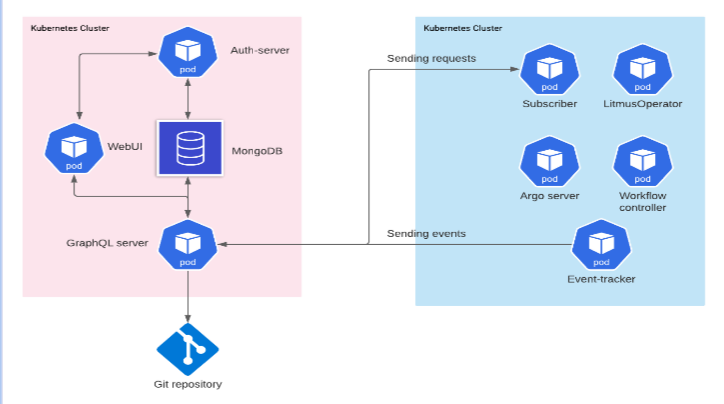 from the git repository. Once it gets the required chaos experiment, it will send it to the subscriber which is responsible for applying the chaos experiment to the target cluster. After the chaos experiment run is completed you can check the resiliency of your application.